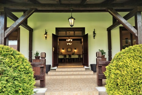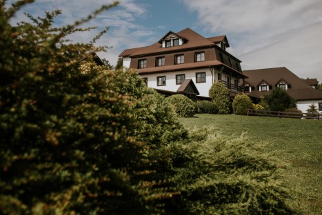 Sala ta jest komfortowo otwarta na dwie niezależne przestrzenie plenerowe. Jedna część to urokliwy dziedziniec w stylu włoskim z widokiem na góry. Drugie wyjście na tarasy i łąkę stanowi zieloną oazę dla miłośników relaksu na łonie natury. Każdy znajdzie tu chwilę oddechu w strefie chill out z wygodnymi leżakami i parasolami chroniącymi przed letnim słońcem.
