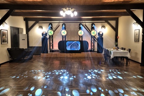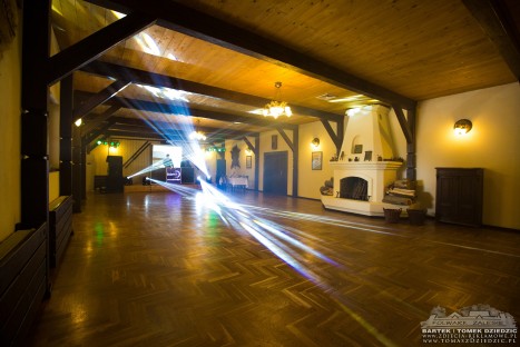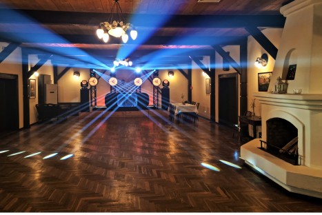 Sala posiada duży dancefloor, szatnie, klimatyzację, węzeł sanitarny oraz zaplecze gastronomiczne.